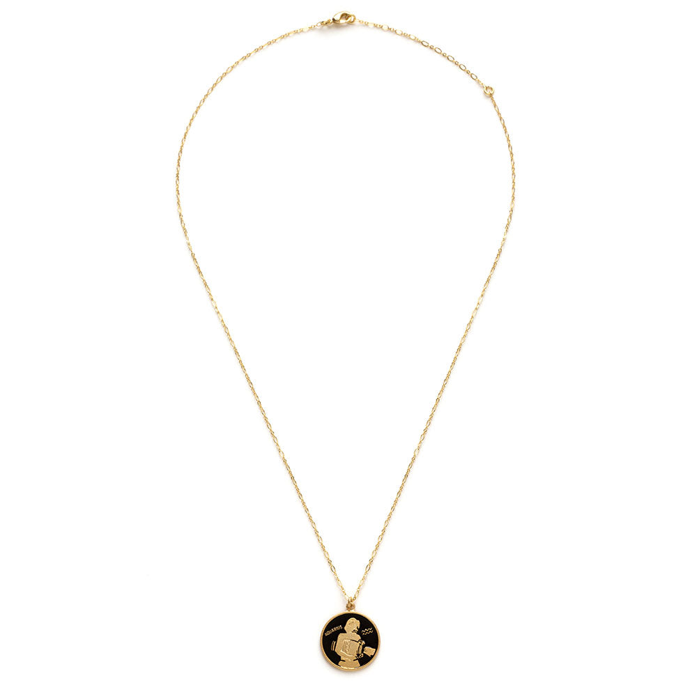 Delivered on a white letter press card, these new zodiac medallions are struck with vintage tooling and feature black enamel, fine barley chain that can be worn at 16" or 18". 14k gold over brass. 100% made in the USA and assembled in our Sonoma, CA studio.