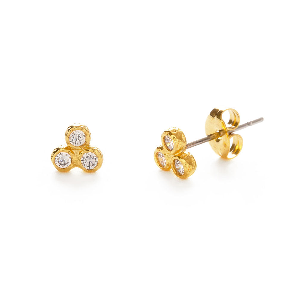 In the ancient world the number 3 was regarded as mysterious and powerful. These stud earrings with 3 Czech crystals set in 14k gold plated brass add a glint of light and sparkle to your ear stack.Surgical steel post.
