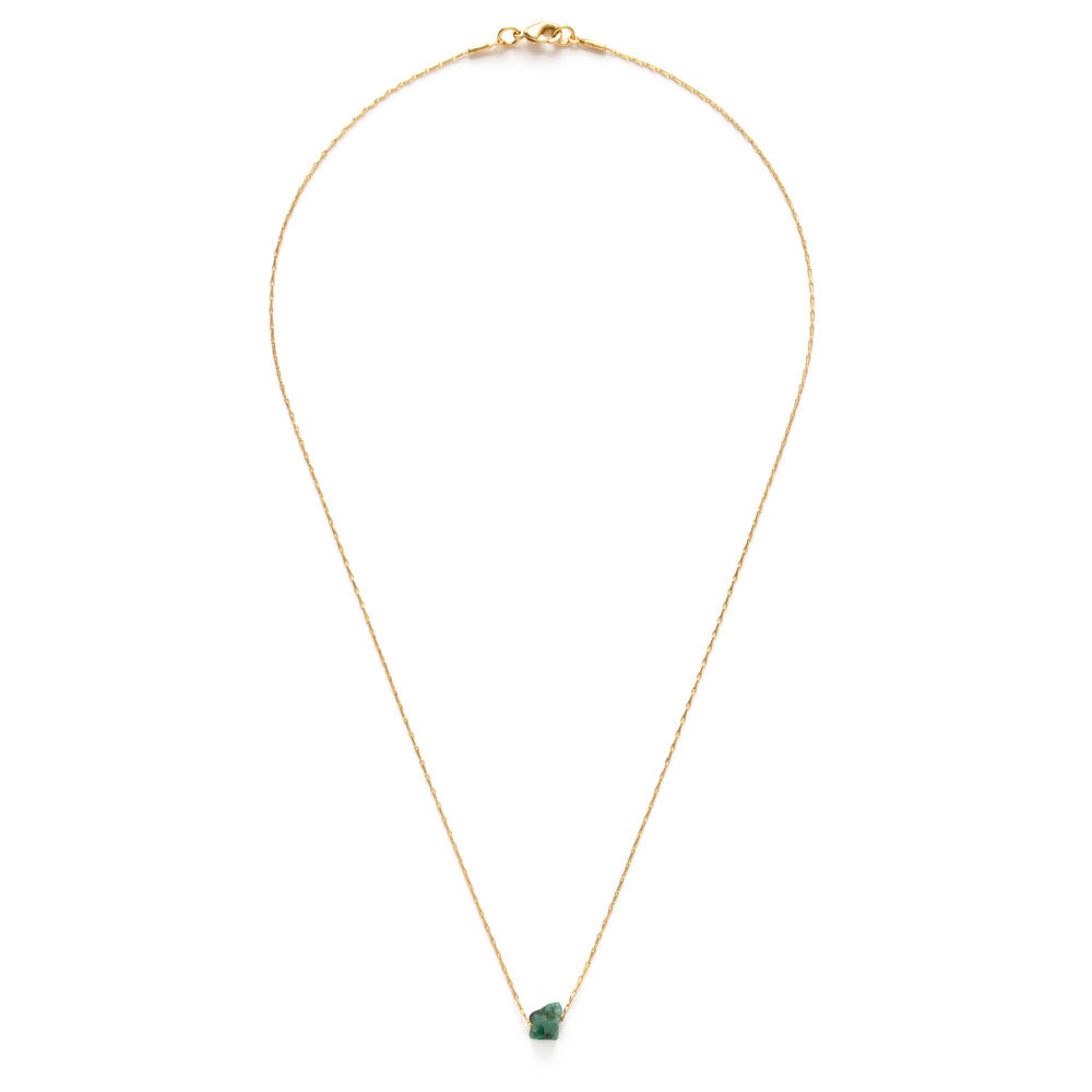 14k gold plated brass chain, raw emerald