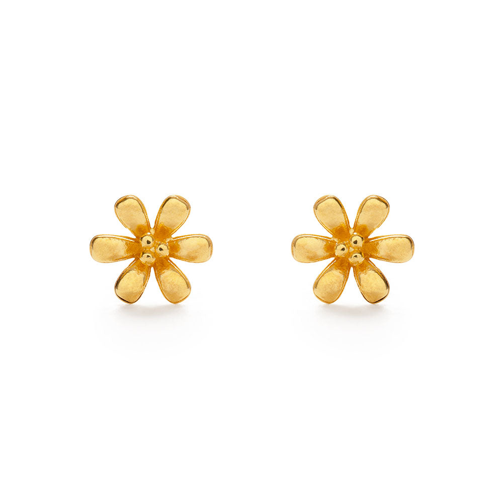 Garden inspiration, small lily flower stud earrings. A perfect spring addition to your earring stack. Made of 14k gold plated brass with surgical steel posts. Made in the USA.