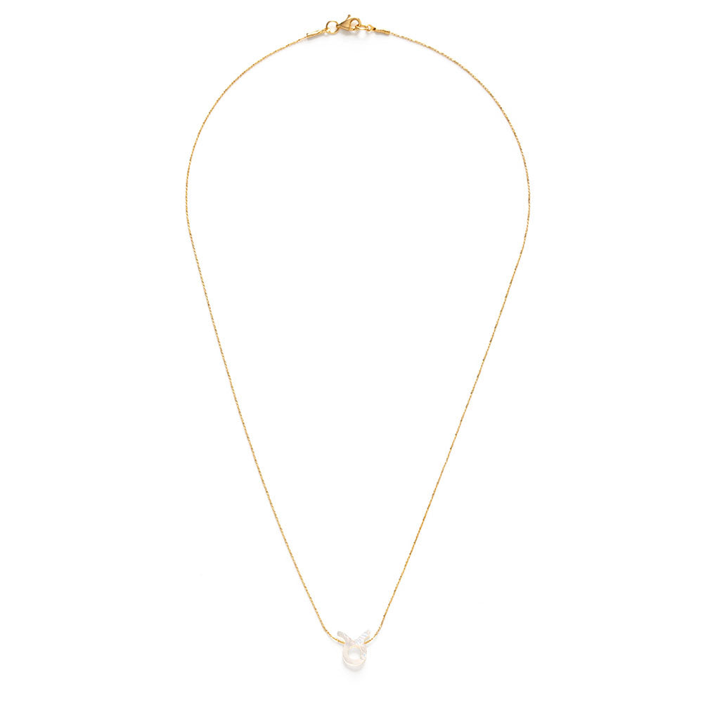 Mother of Pearl, 14k gold plated brass chain + coated to resist tarnish and create a hypoallergenic surface.