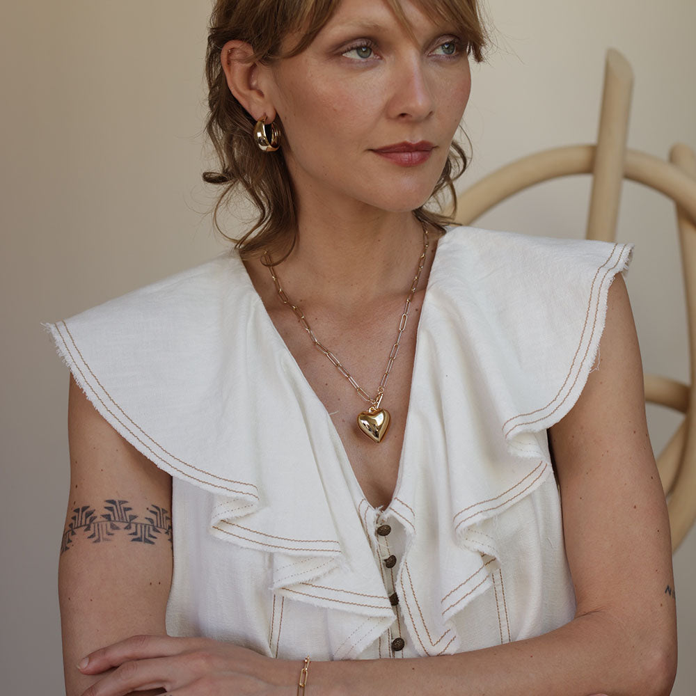 Fun and sexy, vintage 90's style puffed heart on trendy paperclip chain.