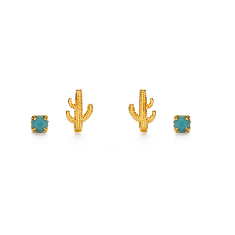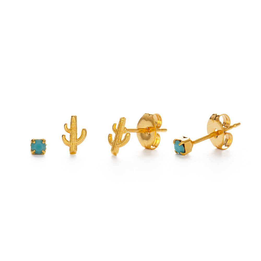 Desert inspiration.... a little homage to Arizona, two tiny saguaro cactus and turquoise color Czech crystal stud earrings. Let your earring stack tell a story!