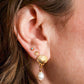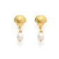 These stud-drop earrings are made of 14k gold plated brass, lead and nickel free with genuine freshwater pearls. They measure 1" in length.
