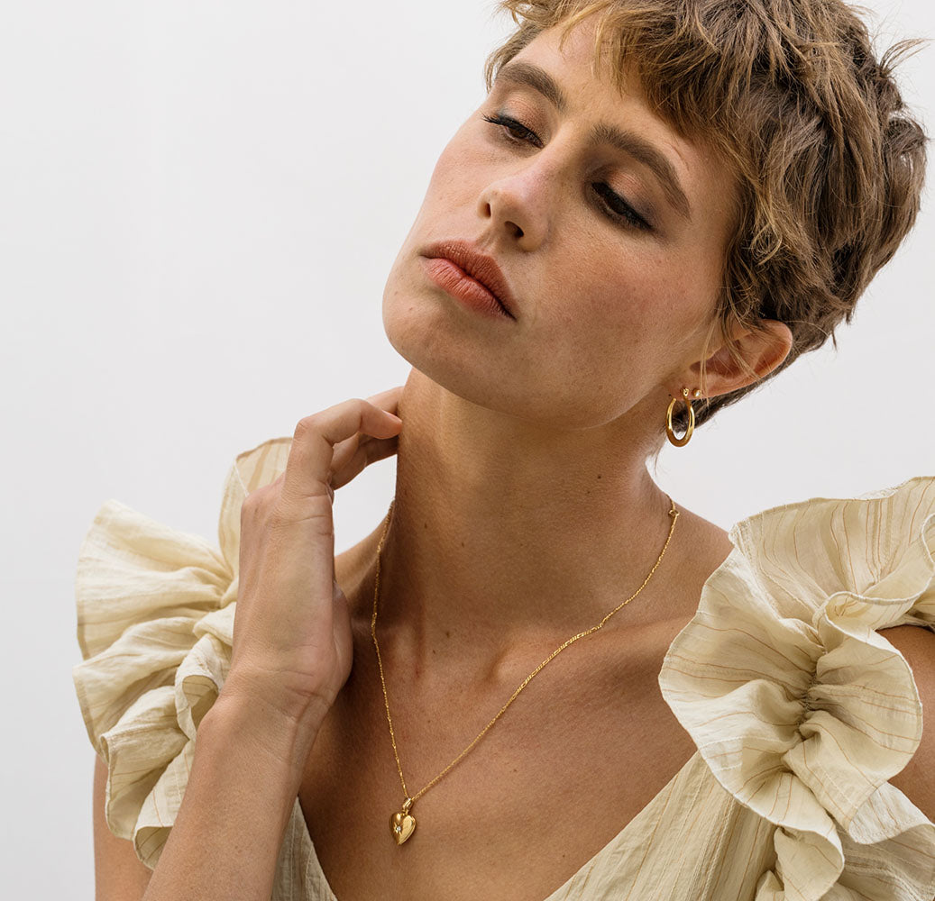 Our plating is a genuine fine 24k gold. The gold is applied to a base metal (brass in this case) in a very thin layer. Gold plated jewelry is an affordable option to solid gold. You can lengthen the life of the gold layer by removing your jewelry when swimming in pools and especially the ocean. Also while exercising. Salt and chemicals break down the gold layer. Do not use a polishing cloth with chemicals to clean plated jewelry as the gold will rub right off.